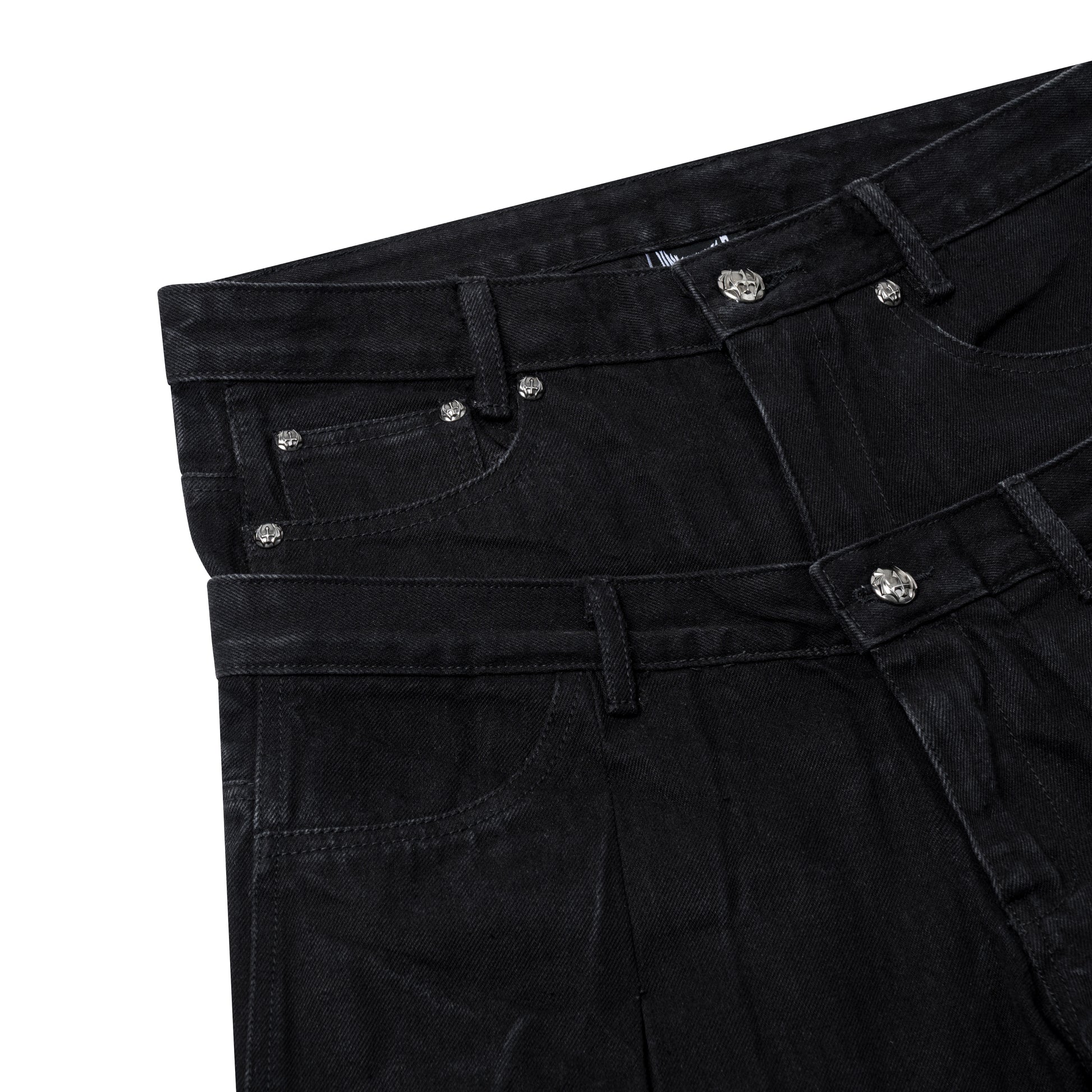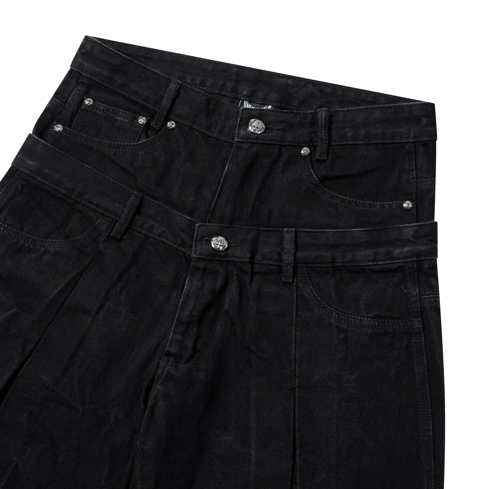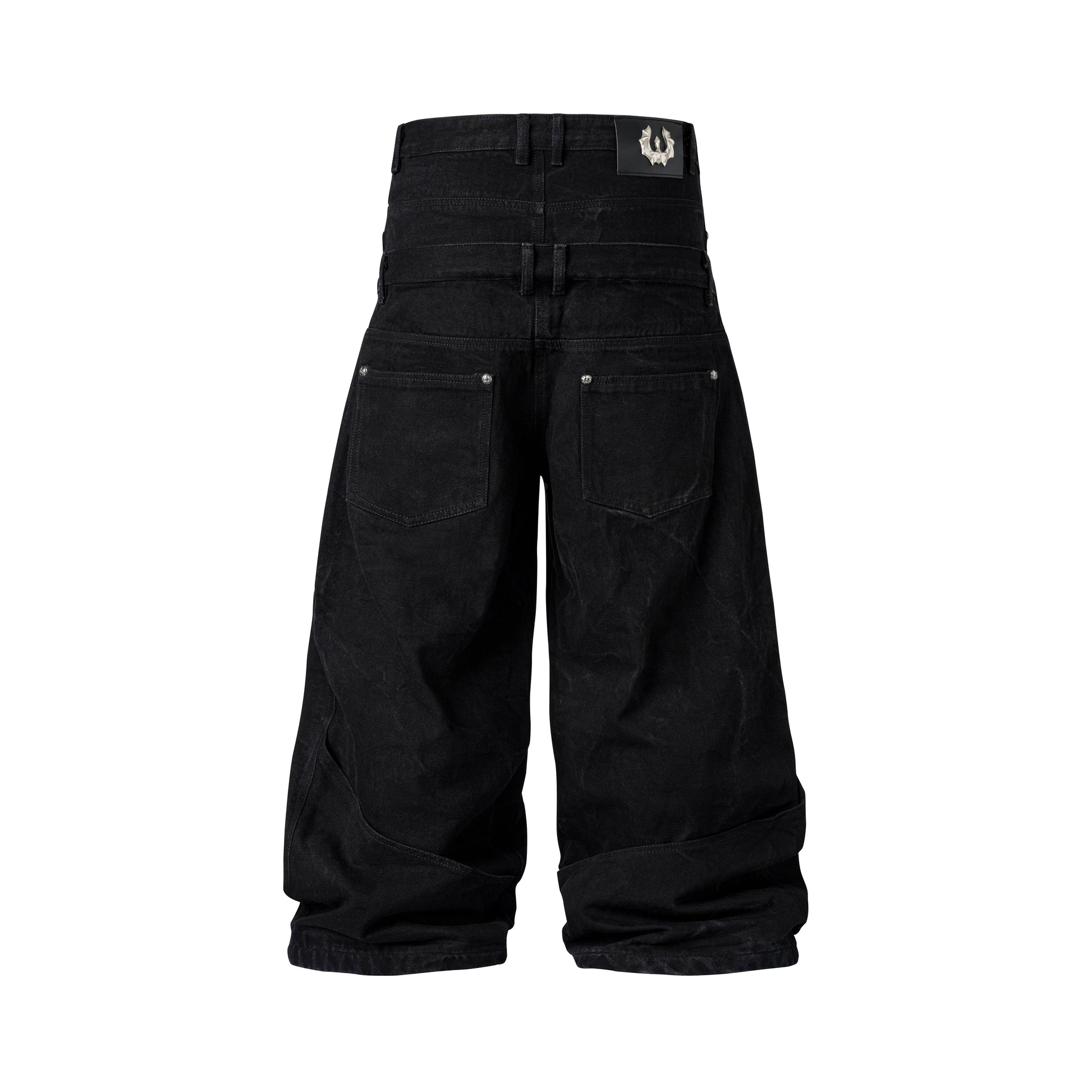 Double Waist Pants featuring a distinctive stone-washed denim finish with reinforced dual waistband construction for enhanced durability and support. The innovative double waist design distributes pressure evenly, reducing strain on traditional stress points while maintaining a sleek silhouette. Crafted from premium denim, these pants offer superior comfort for all-day wear.